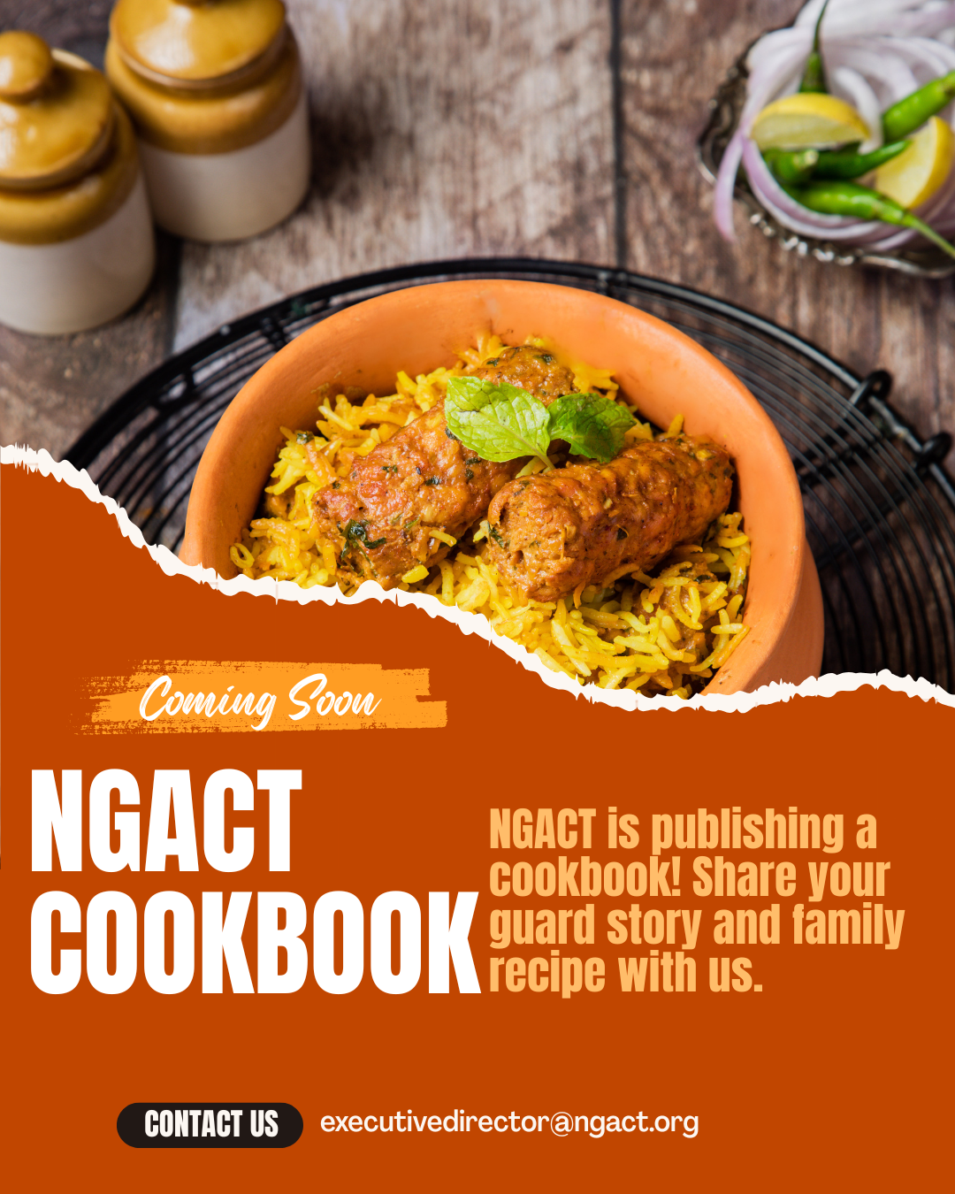 If you’re interested in participating in our cookbook project, please don’t hesitate to contact our executive director at executivedirector@ngact.org to schedule an interview.